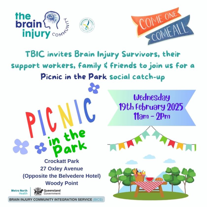 The Brain Injury Community Inc invites you to join us for an outdoor Picnic at Crockatt Park, Woody Point Beach.