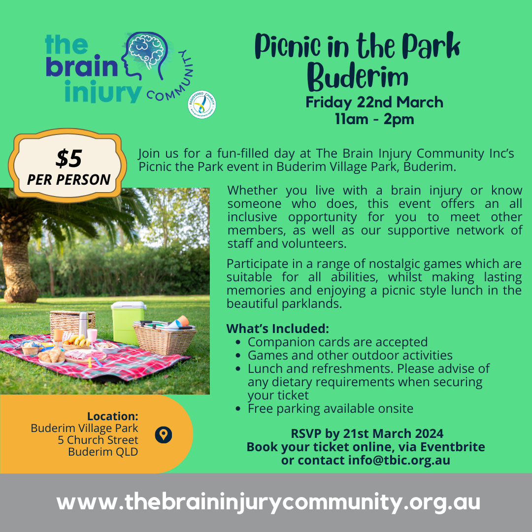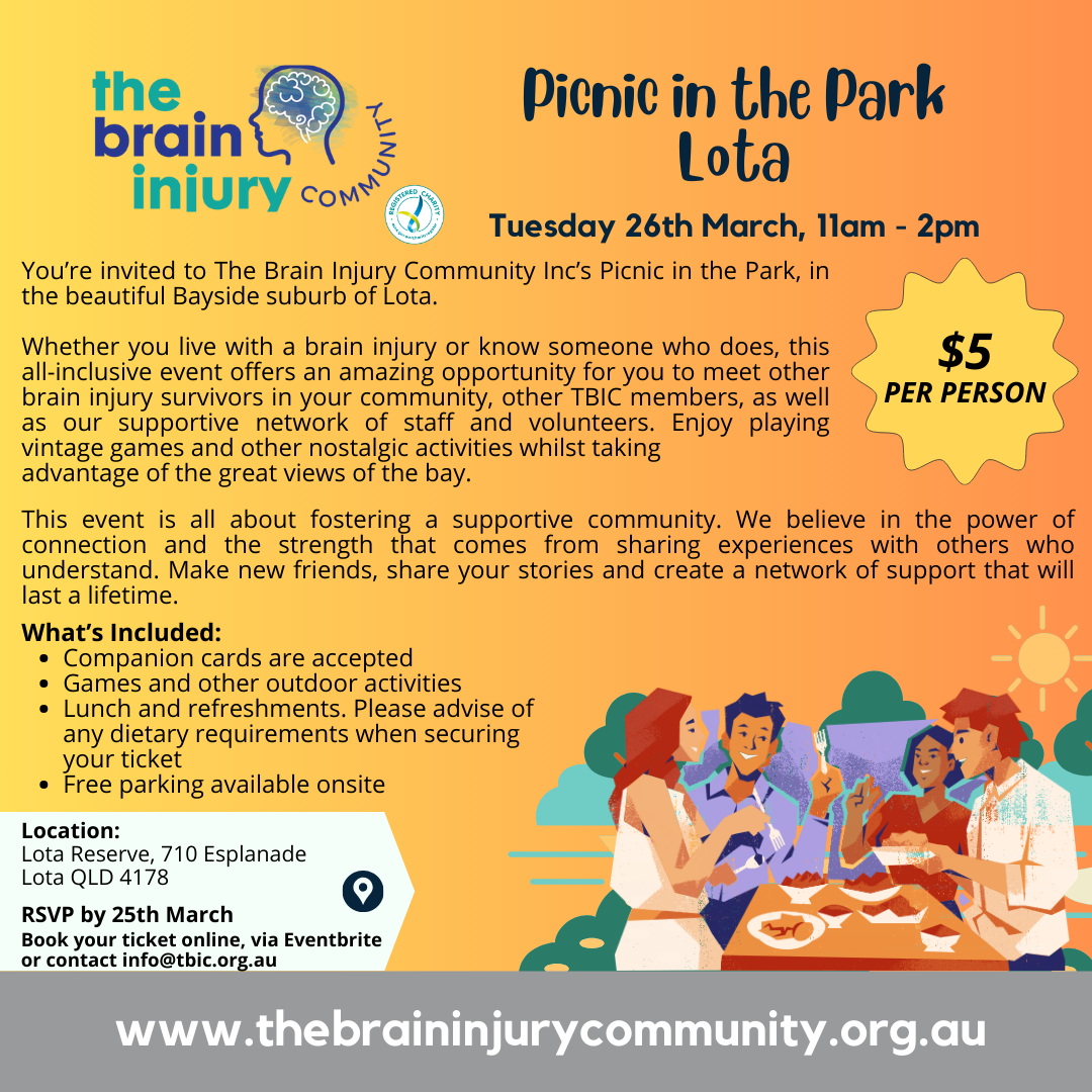 You’re invited to The Brain Injury Community Inc's Picnic in the Park, in the beautiful Bayside suburb of Lota. Whether you live with a brain injury or know someone who...