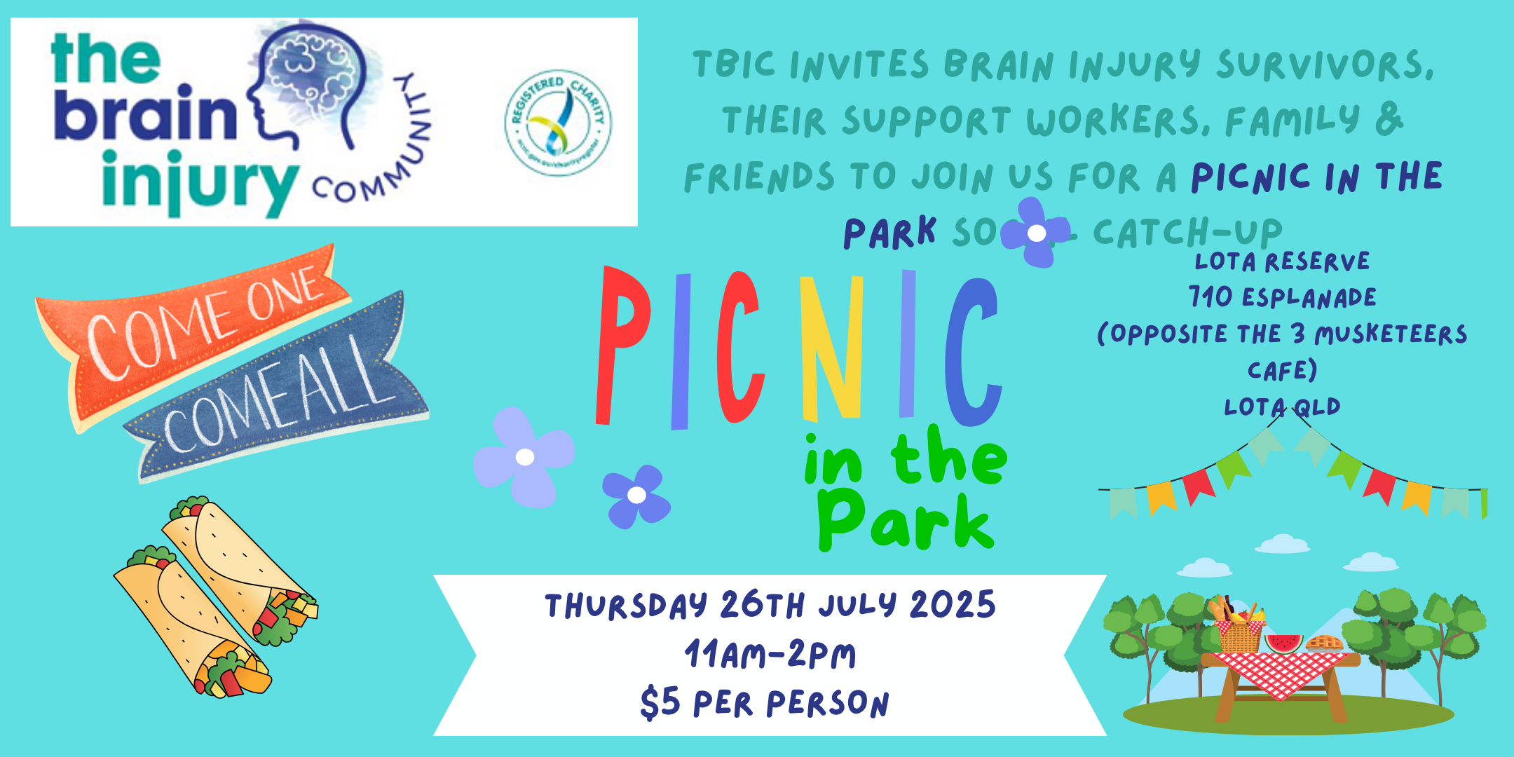 Welcome to TBIC Picnic in the Park - Lota! Do you or a loved one live with a brain injury? Come join us for a fun-filled day at the Lota...