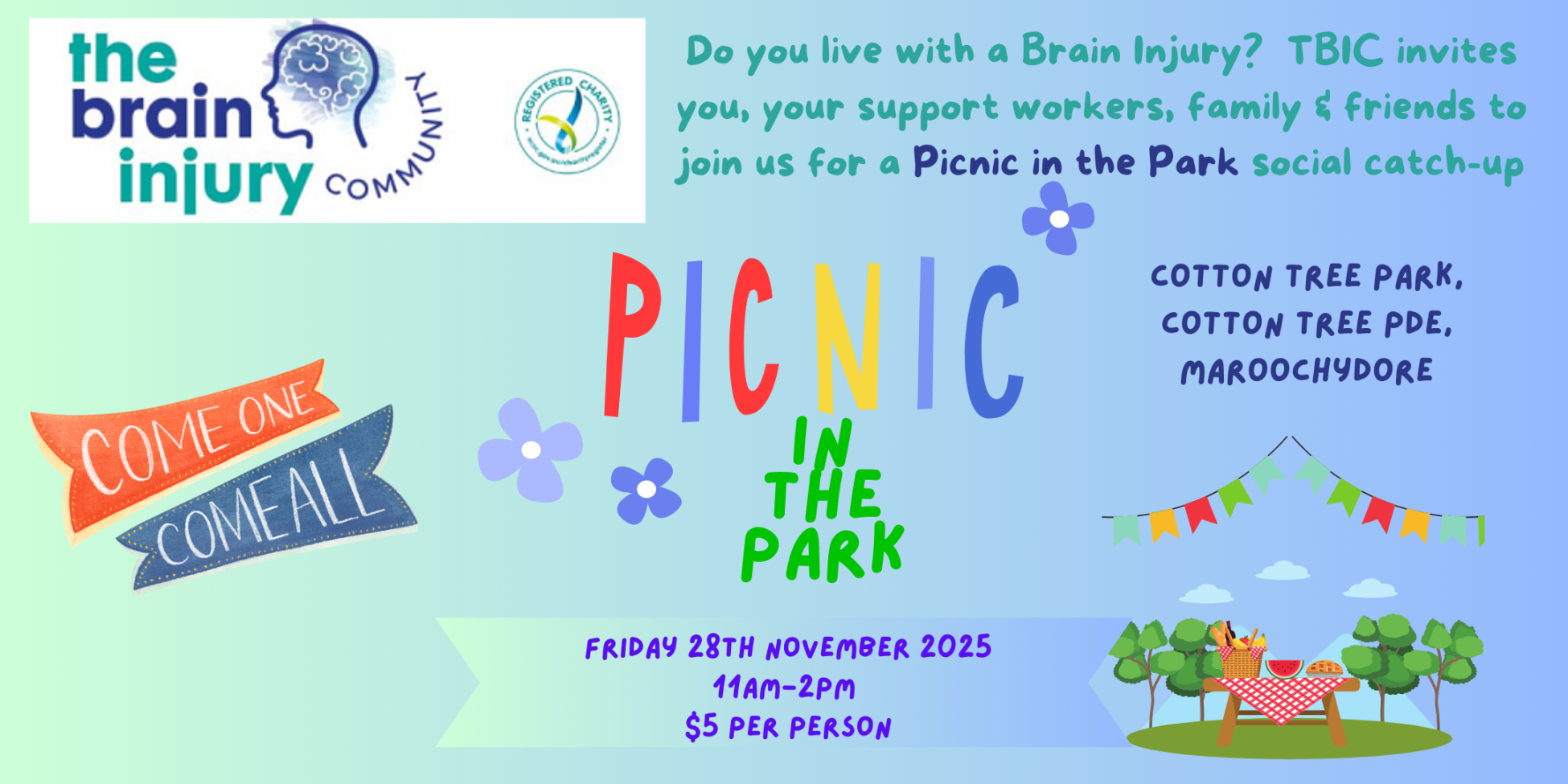 Maroochydore – Picnic in the Park TBIC – Picnic in the Park – Maroochydore Do you or someone you know live with a Brain Injury? Join The Brain Injury Community Inc. and other brain injury survivors… Learn more about Maroochydore – Picnic in the Park